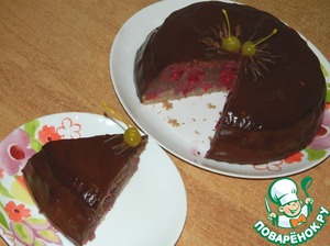 Нижний корж слегка пропитываем сиропом от вишни. Можно его прокипятить, чтобы испарить алкоголь, а можно и таким пропитать.