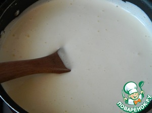 Для теста взбить яйца с сахаром и нагреть, помешивая, на водяной бане или на маленьком огне.