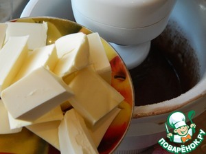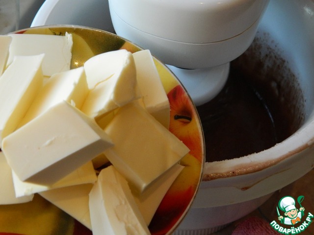 Добавляем мягкое масло. Оно там само растает. Перемешиваем.