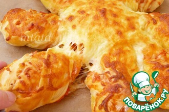 • Расскатать тесто и выложить в круглую разъёмную форму ( Ф 26 см ), делая руками бортики и наколоть дно вилкой.