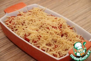 Сверху покрыть капусту ломтиками помидоров, посыпать сухарями, тертым сыром и запечь в духовке до образования румяной корочки.