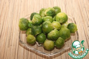 Брюссельскую капусту отварить в соленой воде, примерно 7-8 минут, до полуготовности. Слить и отставить.
