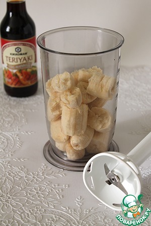 Три банана пюрировать блендером, у меня получилось 270 г пюре.