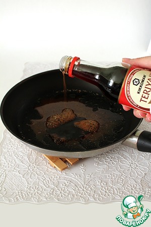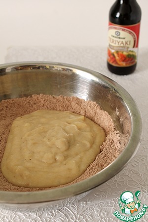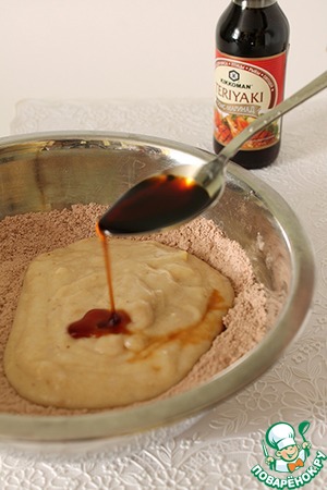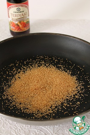 - Соевый соус ( соус-маринад Терияки ТМ Киккоман, 2 ст.л. в тесто, 2 ст.л. для карамели) — 2 ст. л.