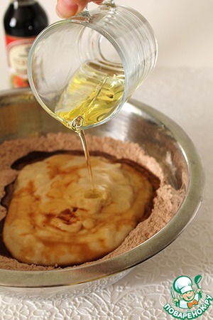Смешать муку, какао, сахар, добавить банановое пюре.