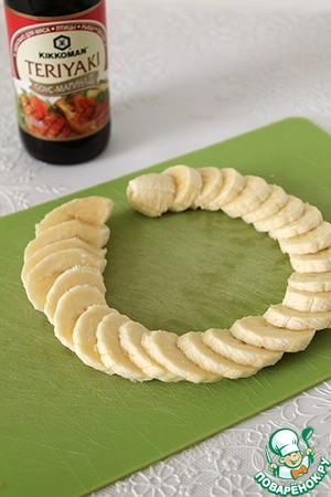 А пока займёмся карамелизоваными бананами. Банан нарезать кружками, толщина 0,8-1 см.