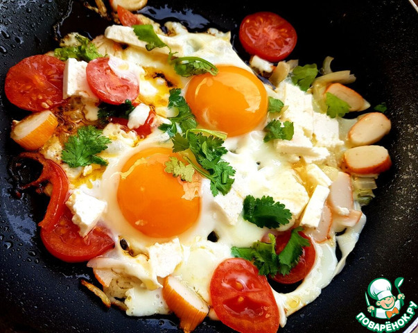 Ингредиенты для «Яичница с крабовыми палочками»: