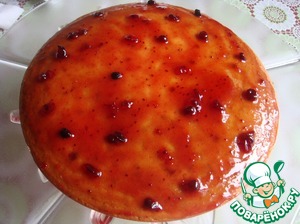 Промазать корж джемом (50 г.). Я использовала клюквнный ТМ "Махеев", он с легкой кислинкой, очень ароматный и замечательно подходит для этого торта.