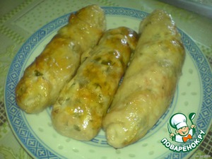 Я очень часто делаю котлеты из куриных грудок, а шкурку собираю. Вот приготовила такие рулетики. Можно есть холодными вместо колбаски, а можно и как горячее.