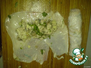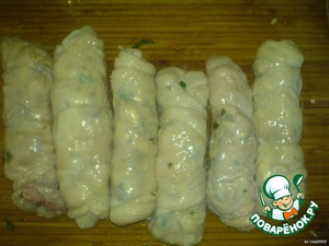 Кожу куриную расправила, и положив туда начинку, завернула как голубцы.