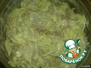 Мясо курицы крупно порезала и замариновала в майонезе минимум на час, можно на ночь.