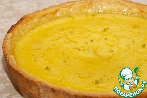 Подготовленное тесто раскатать размером больше диаметра формы на высоту бортиков. Выложить тесто в форму, излишки обрезать, наколоть вилкой, поставить в холодильник. Выжать сок из лимона и лайма (количество приведено ориентировочное, если вы любите насыщенно-кисловатый вкус, то объем сока увеличить.