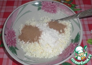 Добавить сахарную пудру, какао и ванилин. Перемешать.