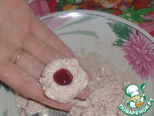 • Взять немного массы и в серединку кладем капельку джема.