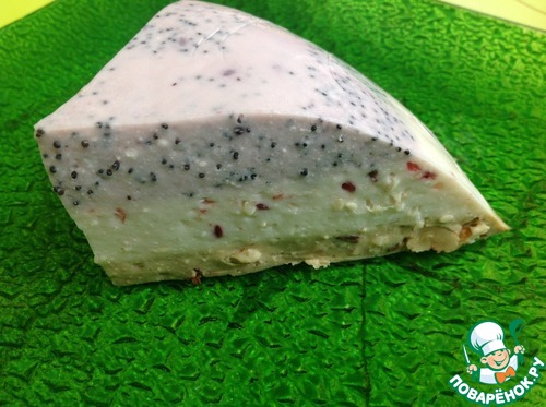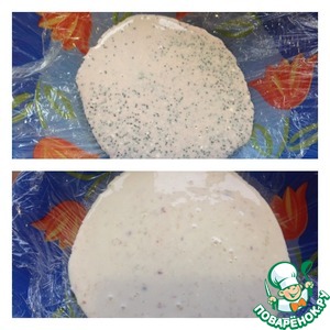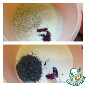 Во вторую часть добавить черничный джем и мак, перемешать -