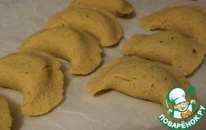 • Лепим желтые вареники со шпитатной начинкой, а зеленые - с картофельной.