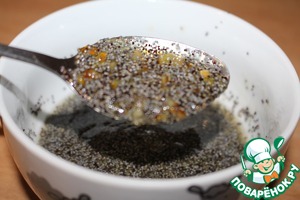 • Для начинки я заранее распарила мак в кипятке. Затем слила воду и добавила по 3 столовые ложки лимонного и апельсинового джема ТМ "Махеев".