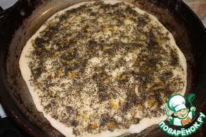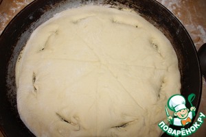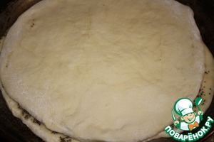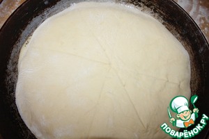 • Выкладываем наш первый раскатанный круг на чугунную сковороду, смазанную растительным маслом.
