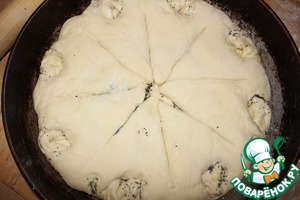 Сковорода у меня была диаметром 36 см, я заглядывала в духовку в процессе выпечки, так вот, сдоба так поднялась и "растолстела", что я даже не ожидала такой пышности!