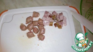 • На той же сковороде обжариваем минут 5 грудинку и колбаску и туда же - в мультю.