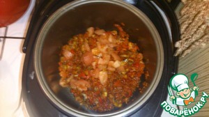 Перемешиваем, закрываем и ставим режим "тушение" или "выпечка" на 50-60 минут