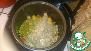 • Выкладываем в мультю и начинаем добавлять консервы - горошек пошел: