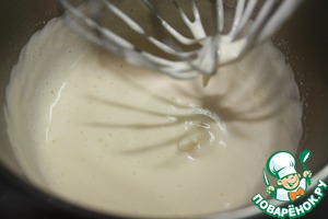 Яйца смешать с сахаром и ванильным сахаром, добавить соду, гашенную уксусом, и взбить в пышную массу