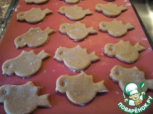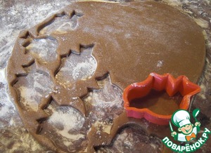 Отломите кусочек теста и раскатайте на подсыпанном мукой столе. Формочкой вырежьте фигурки.