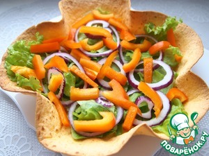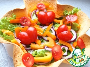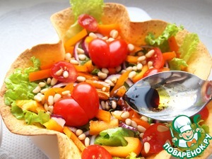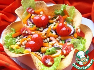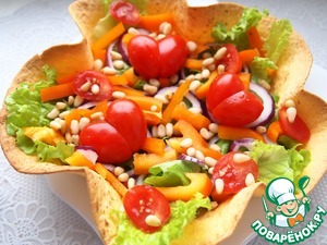 Рецепт «Овощной салат с кедровыми орешками в корзинке»: