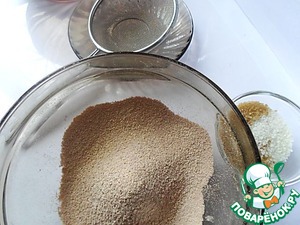 Сахарную пудру, какао-порошок и муку просеиваем через сито в мисочку.