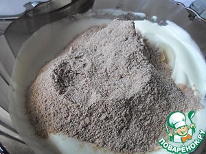 • Аккуратно соединяем белковую массу и сыпучие компоненты, перемешивая тесто снизу вверх, чтобы белки не опали.