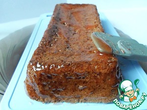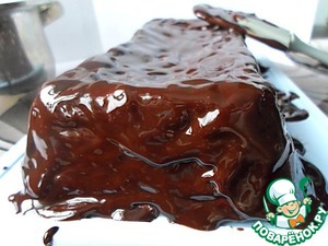 • Растапливаем в кастрюльке на медленном огне шоколад и размягченное сливочное масло. Обливаем глазурью всю поверхность бисквита.