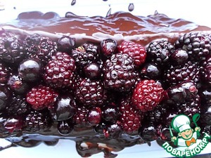 • Щедро обсыпаем верх торта ягодами и ставим торт в холодильник до полного застывания шоколадной глазури.