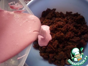 • Теперь наш готовый кекс крошим на кусочки и смешиваем с муссом.