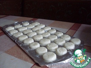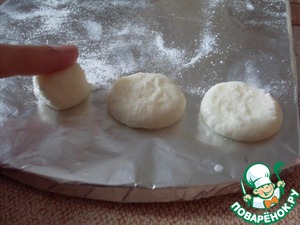 Скатываем шарик примерно из половины чайной ложки сахарной массы. Выкладываем на заранее подготовленную поверхность. Чтобы смесь не липла к рукам, рекомендуется присыпать пальцы сахарной пудрой. Слегка сплюснуть сформированный сахарный шарик. -