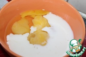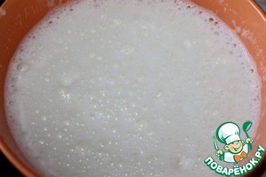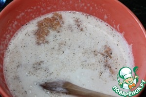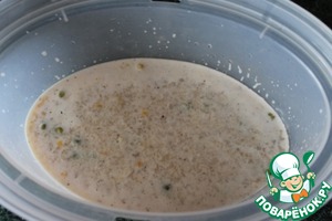 Чашу мультиварки смазываем капелькой растительного масла и равномерно распределяем курино-молочную смесь, парим 35 минут, затем даём остыть,
