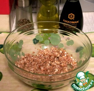 Хлопья залить 200 мл кипятка, добавить соль, масло и оставить для набухания. Через 10 минут добавить столовую ложку муки, тщательно размешать.