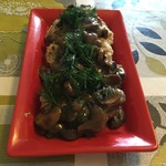 Для соуса мелко нарезать лук, грибы, обжарить до готовности.