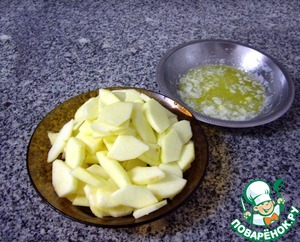Попыталась достать пирог из формы - не получилось, он просто разламывался в местах, где яблочки, а у меня их ушло три штуки, потому как форма у меня большая, и поэтому пирог не такой высокий как у тебя.