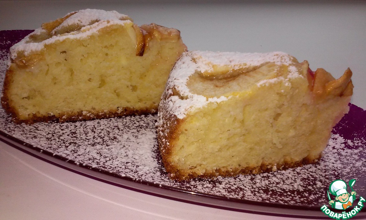 Обратите внимание, яблоки внутри почти исчезают, остаются еле заметные «ребрышки». Пирог почти до самого низа пропитывается их соком, только донышко остается плотным.