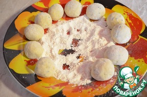 Мокрыми руками сформировать шарики и обвалять в муке.