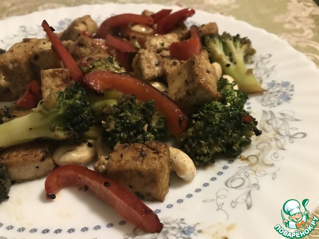 Двадцать лет назад у нас на Дальнем Востоке был в прямом смысле "бум" на приготовление блюд из тофу. Соя у нас растёт повсеместно, как виноград в Италии или рис в Китае. Но как-то со временем этот ажиотаж угас. И вот недавно я нашла интересный рецепт вегетарианского стир-фрай от Эктора Хименес-Браво - знаменитого шеф-повара, обладателя звания World Mast. Повторила это рецепт в подробностях до мелочей и осталась очень довольна. В Пост такое блюдо - полноценный обед или ужин, можно есть как самостоятельное блюдо, можно с рисом.