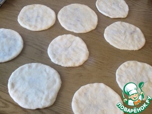 Затем раскатайте каждый шарик в лепешку не более 10 см.