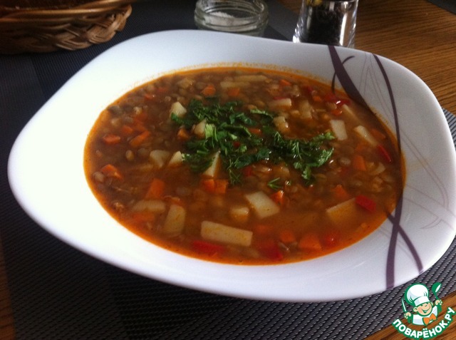 Рецепт «Постный суп с чечевицей "Супа лешта"»: