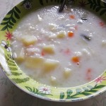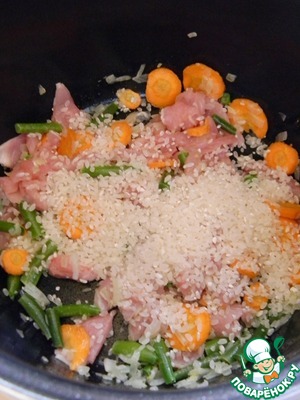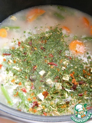 Затем рис (если не хотите густой суп, можно добавить меньше риса)