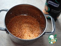 Гречка варится дольше чечевицы, поэтому ее ставим вариться первой.