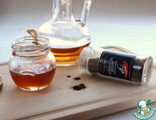 • Приготовить заправку. Оливковое масло, мёд, уксус, перец - все хорошо смешать.