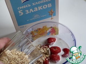 - Хлопья овсяные (или "Смесь хлопьев 5 злаков" от Мистраль.) — 1/2 стак.