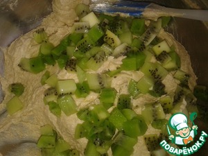 Нарезаем мелким кубиком киви и добавляем в тесто;
