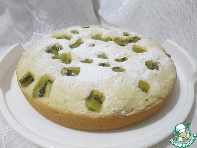 Киви мы специально не вмешивали в тесто, а просто разложили по верху, решили, что так будет красивее.